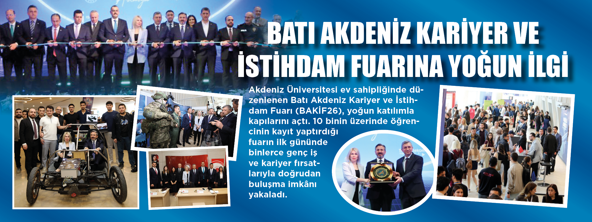 Akdeniz Üniversitesi ev sahipliğinde düzenlenen Batı Akdeniz Kariyer ve İstihdam Fuarı (BAKİF26), yoğun katılımla kapılarını açtı. 10 binin üzerinde öğrencinin kayıt yaptırdığı fuarın ilk gününde binlerce genç iş ve kariyer fırsatlarıyla doğrudan buluşma imkânı yakaladı.